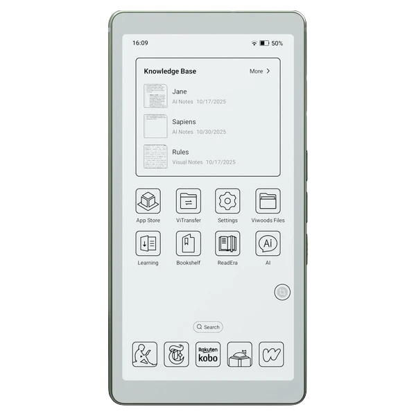 | Meebook M8 | ![]() | $259.99 | 2024 | Available | AliExpress, Amazon | E Ink Carta HD | 7.8 | 1404×1872 | No | 300 PPI | Yes | Yes | ✔ | ✔ | ❌ | ✔ | ✔ | ✔ | ✔ | Wi-Fi 6 | ❌ | Android 14 | Any; download via Google Play Store | ✔ | ✔ | ✔ | 64 GB | 4000 MB | 2.2 GHz octa core | Speakers, microphones | ✔ | ❌ | ❌ | 3200 mAh | USB-C | No | 19.3×14.0×0.7 | 265 | 7.60×5.51×0.28 | 9.35 | Flush | White | - | M8 | Not available | Meebook Facebook | buttons(top|fit) |
