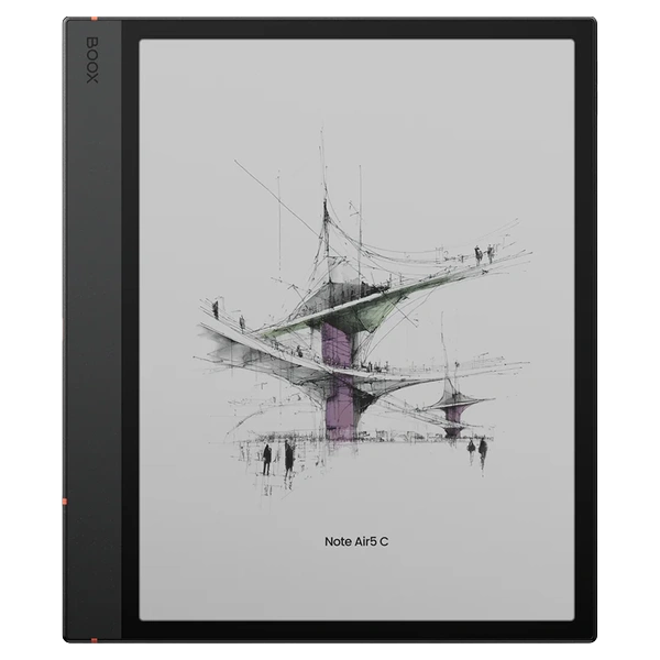 Boox Note Air 5 C | ![]() | $529.99 | 2025 | Available | Boox, Amazon | E Ink Kaleido 3 | 10.3 | 1860×2480 | Yes | 300 PPI, color: 150 PPI | Yes | Yes | ✔ | ✔ | ✔ Volume | ✔ | ✔ | ✔ | ✔ | Wi-Fi 5 | ❌ | Android 15 | Any; download via Google Play Store | ✔ | ✔ | ✔ | 64 GB | 6000 MB | 2.0 GHz octa core | Speakers, microphone, fingerprint scanner | ✔ | Via USB adapter | ❌ | 3700 mAh | USB-C | No | 22.5×19.2×0.58 | 440 | 8.90×7.60×0.23 | 15.5 | Flush | Black | Pen3 stylus, magnetic case, (optional: keyboard cover: +$77) | Note Air 5 C | User Guide | Boox.com | fit |